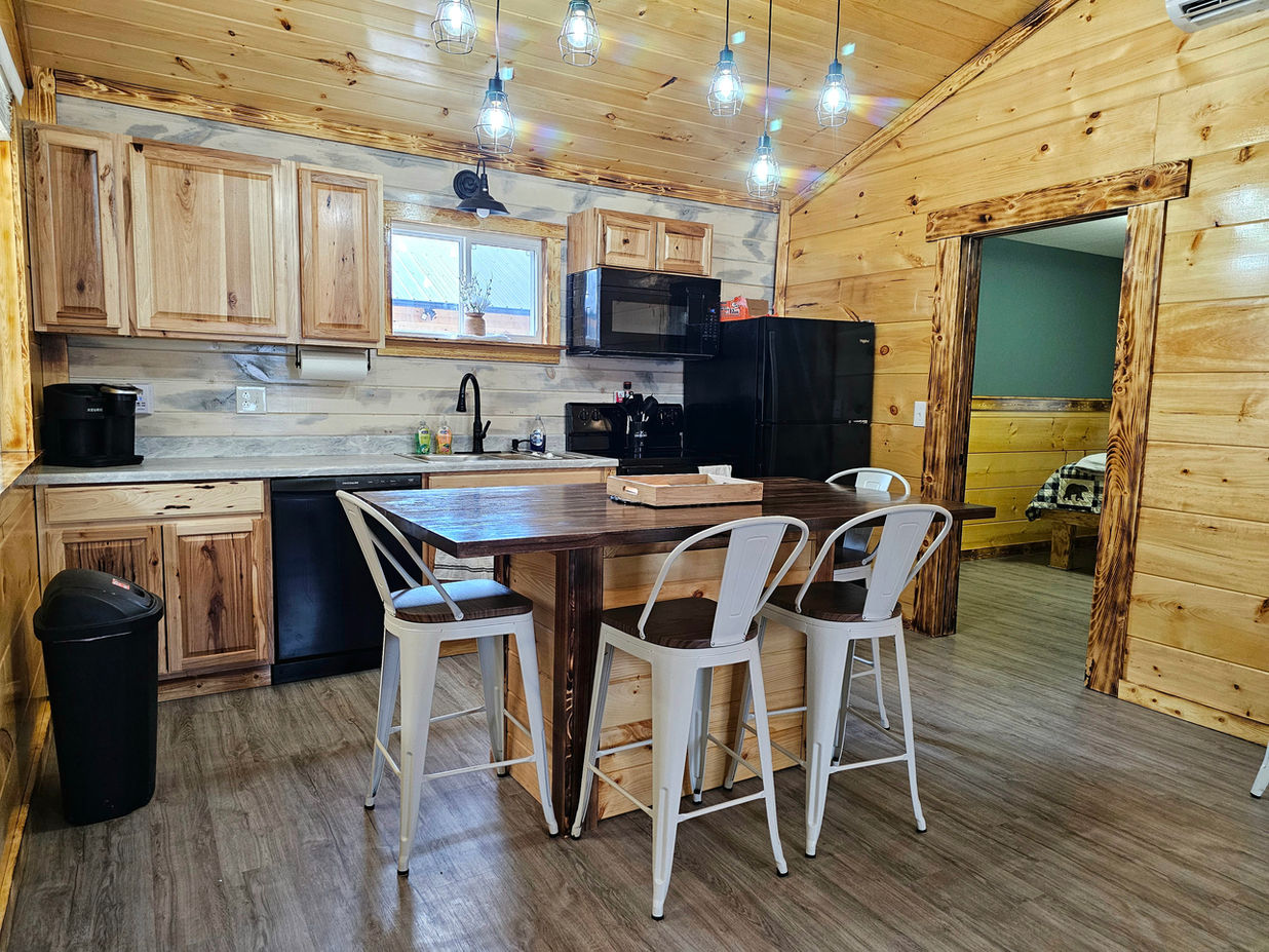Homely Essentials: Enjoy our well-stocked cabin with bedding, towels, a coffee pot, and coffee.
